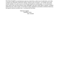 Letter brought much pleasure upon return from short tour of exploration (not in cesspools but among wild Farne Islands); thanks for Graciosa, worthy of its name, Arcady breathes in it, seems to scent growing flowers and grass; go on and prosper, such work will not be thrown away though may take little while to mature; glad indeed any words or book of his should have proved seed from which grown such excellent crop or at least first fruits